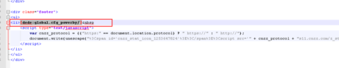 然后我們在網(wǎng)站的footer.htm文件中用標(biāo)簽{dede:global.cfg_powerby/}進(jìn)行調(diào)用。根據(jù)自己網(wǎng)站的實際情況來調(diào)用位置。